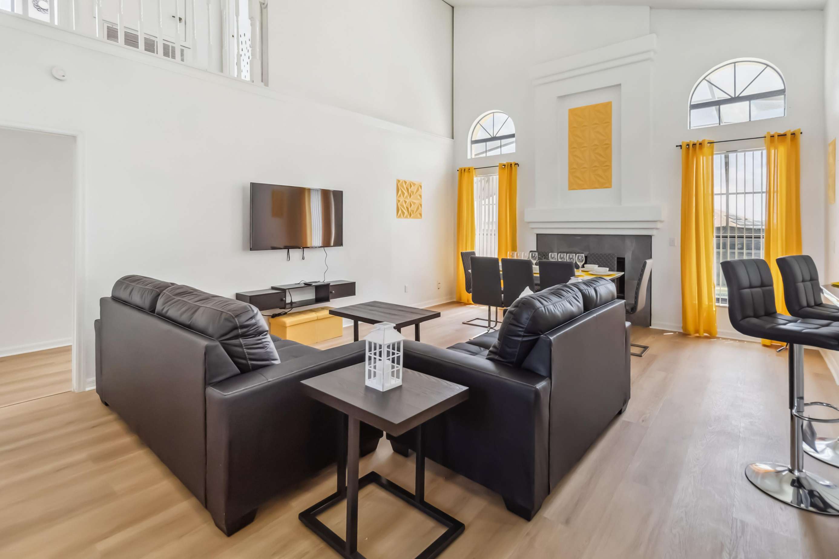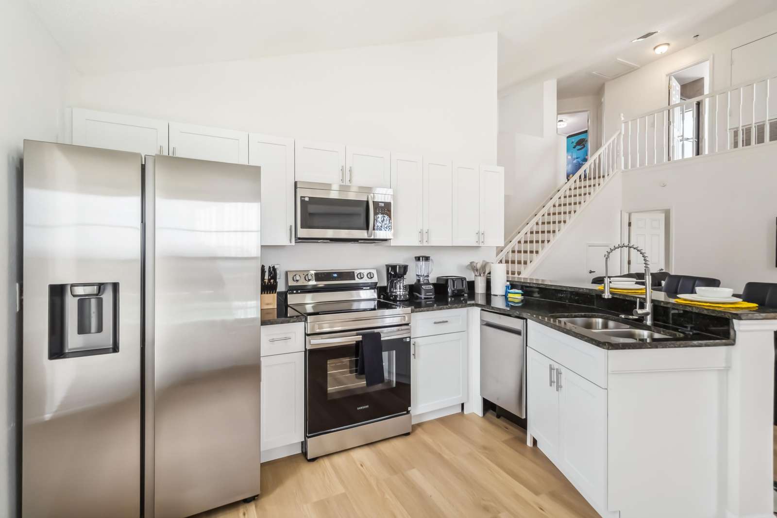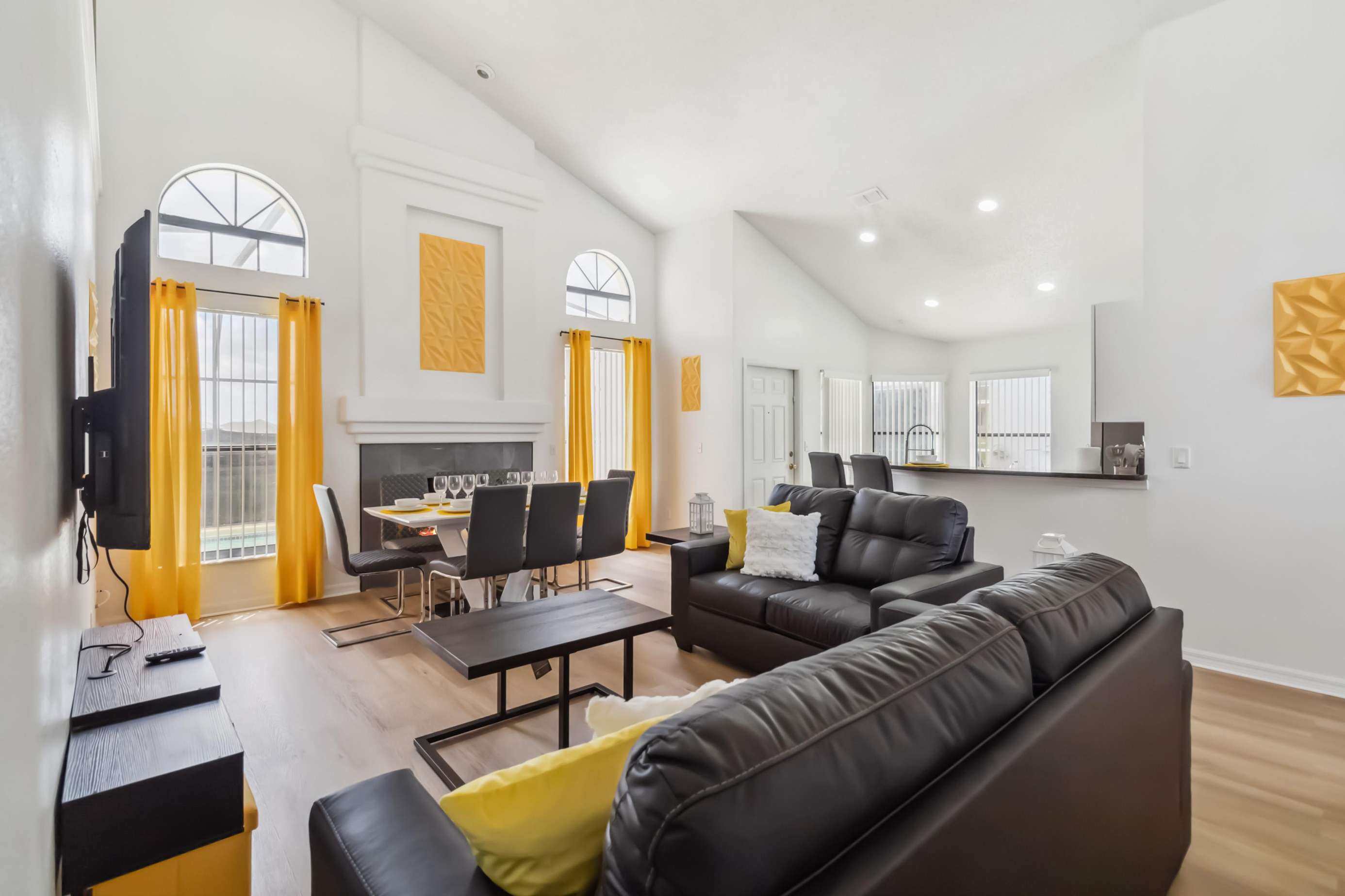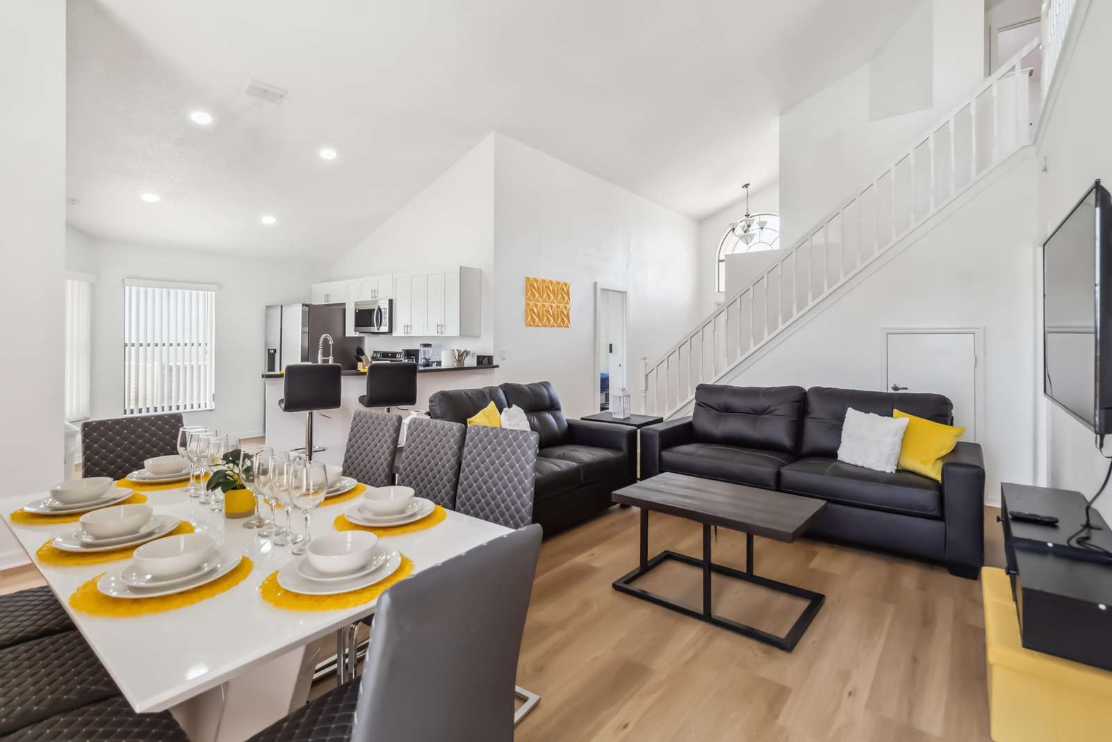 The home features a fully equipped kitchen, ideal for preparing meals and enjoying quality time with family and friends. The open-concept living area includes a large, cozy living room perfect for movie nights or simply relaxing after a day of fun.