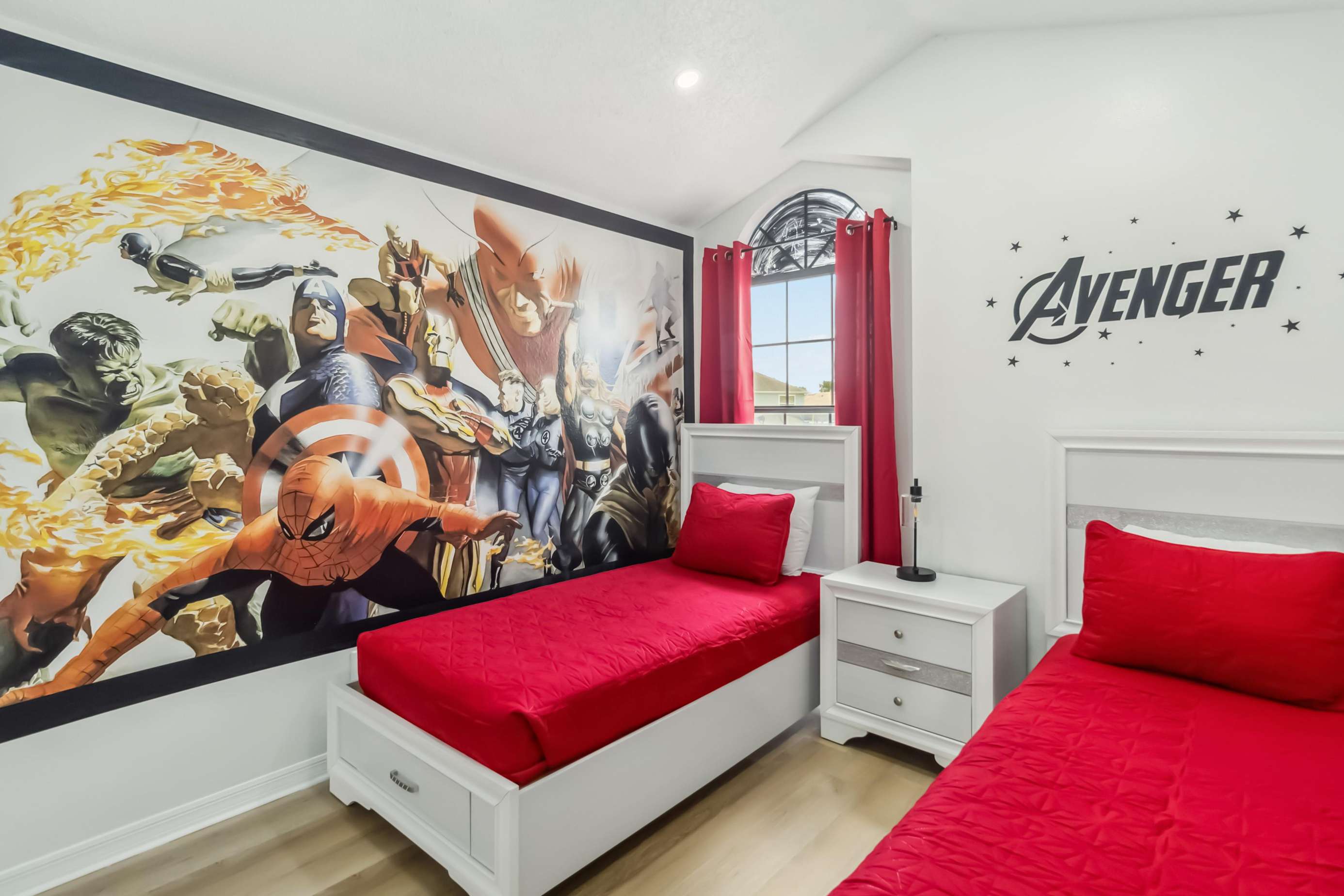 • Bedroom 4: Two twin beds featuring Avengers-themed décor
