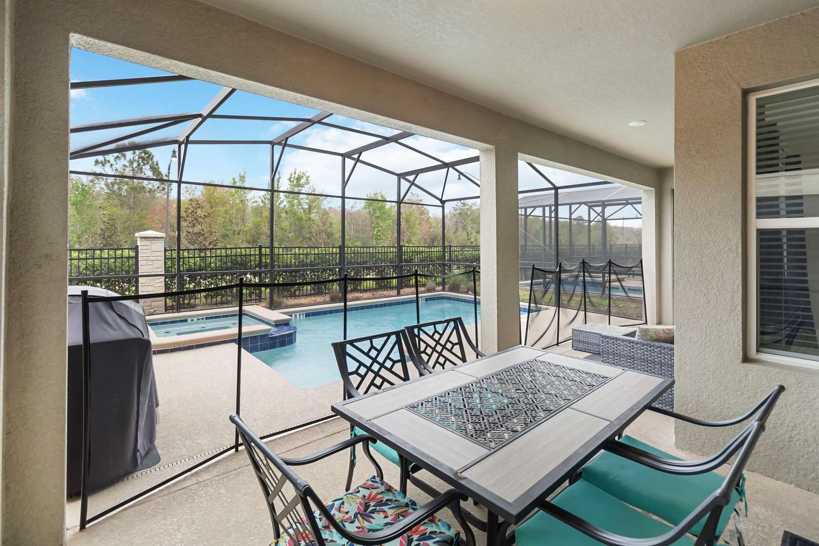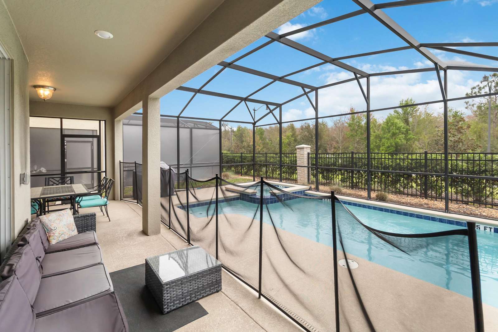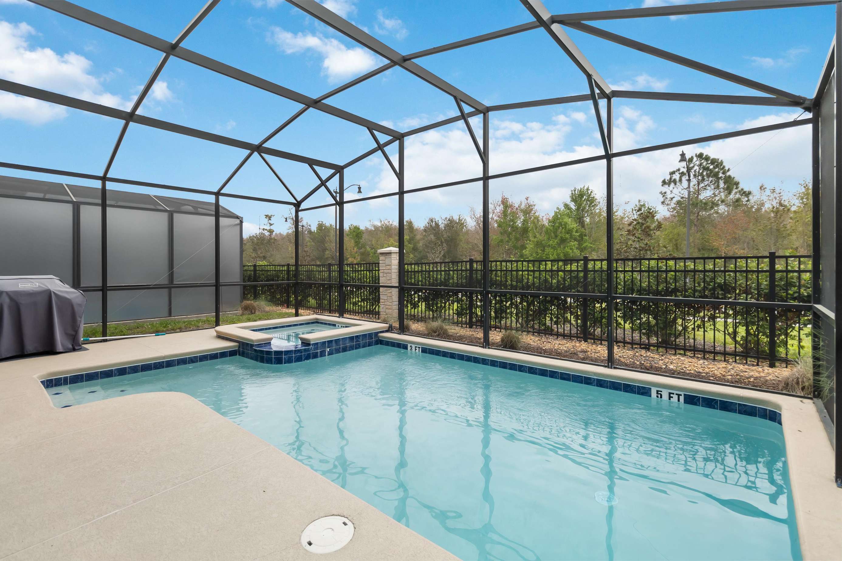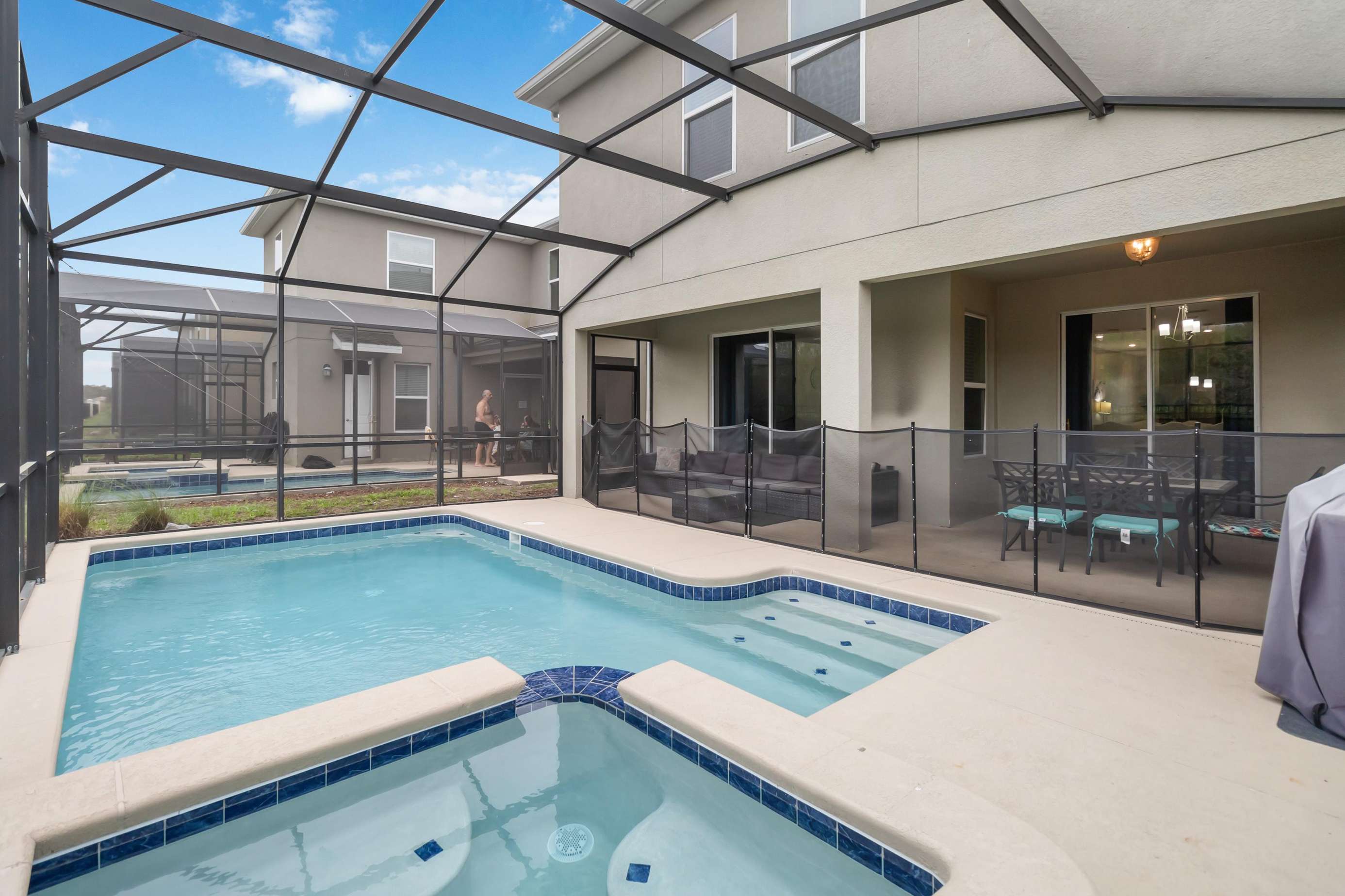 This stunning 6-bedroom, 5-bath vacation home offers a perfect blend of luxury, comfort, and entertainment. Fully furnished and thoughtfully designed, it features a private screened-in pool and jacuzzi ideal for relaxing or spending quality time with family and friends.