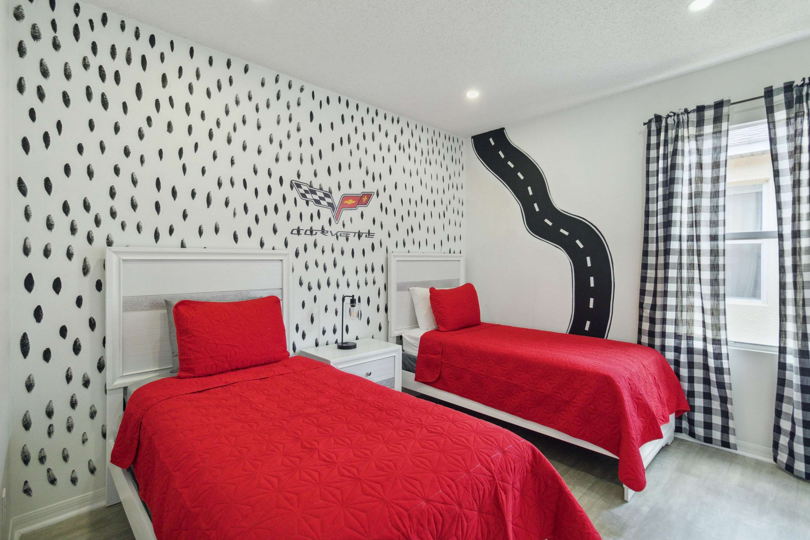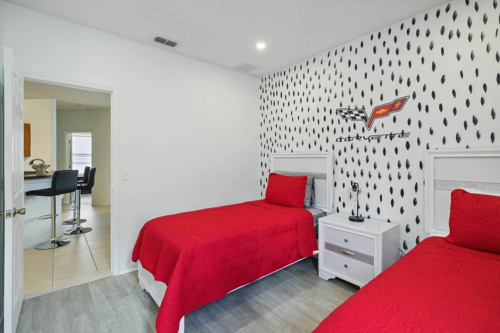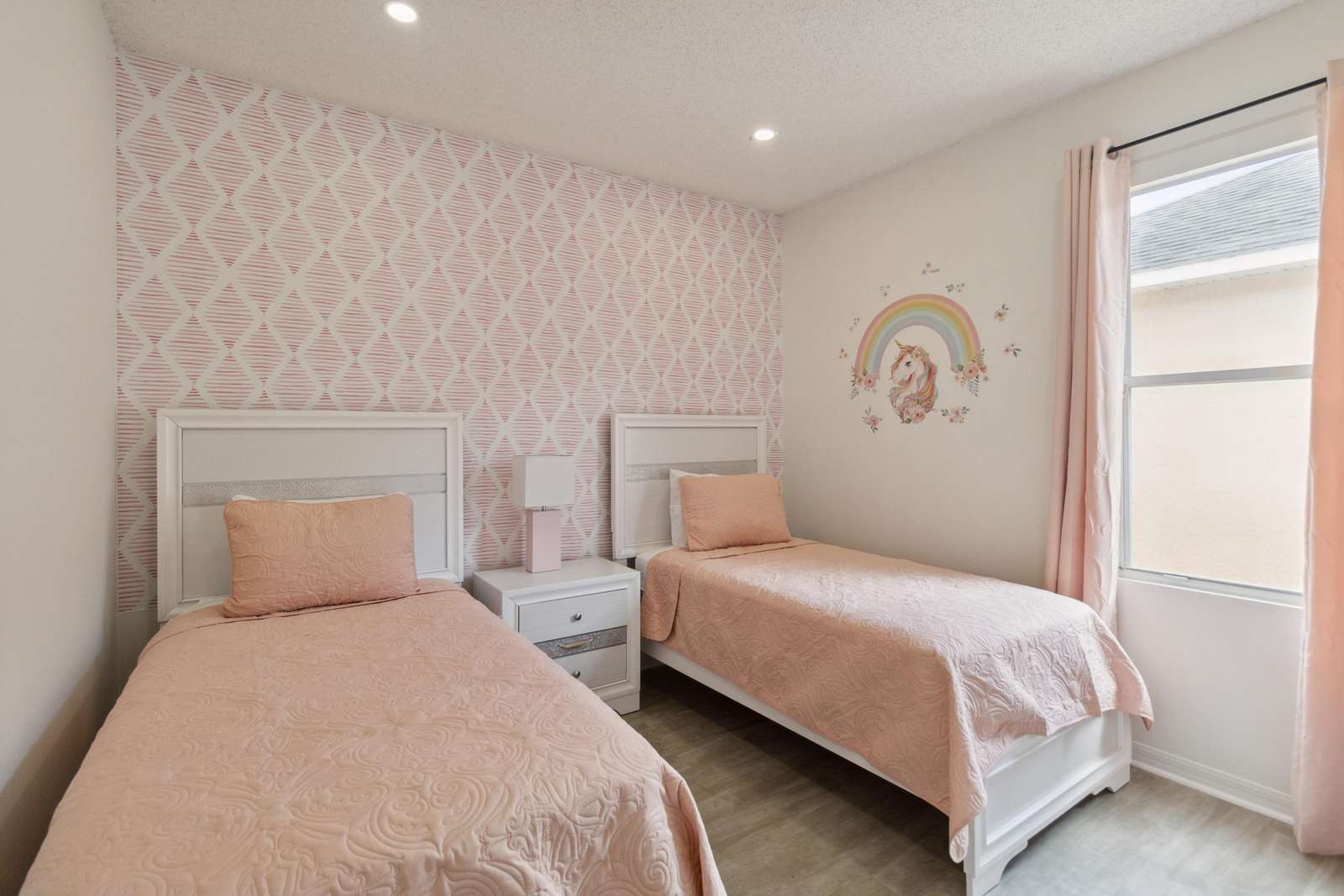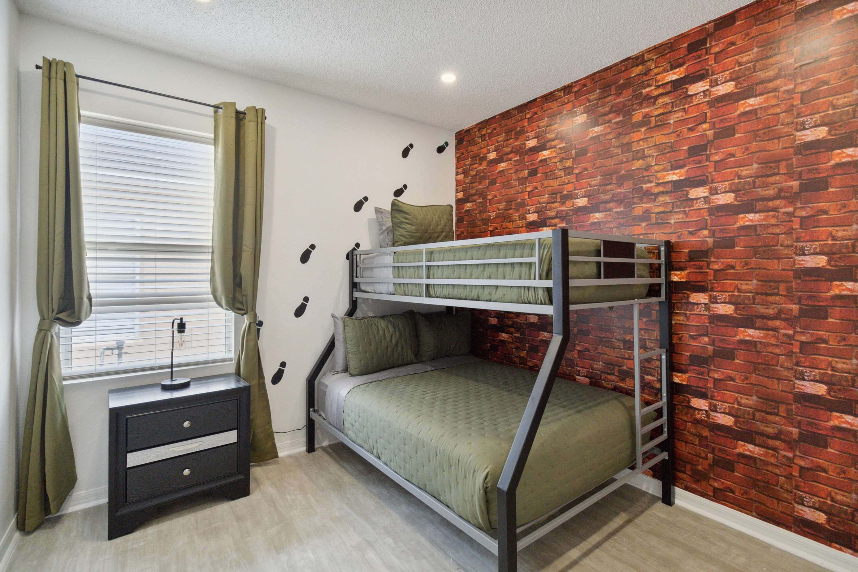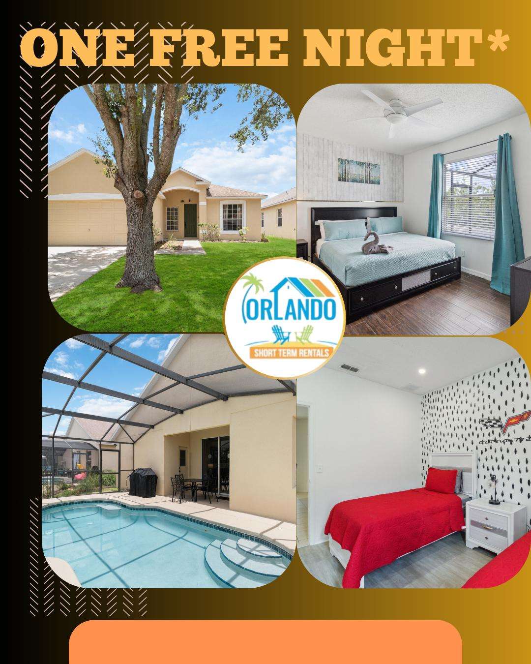 Beautiful, 5BR/3BA pool home in Sunset Ridge. Great entertaining home with screen enclosed pool in covered lanai. It is located in the convenient Davenport community of Sunset Ridge which is close to shopping at Posner Park, Advent Health emergency room, dining, local amenities and access to I4. Less than 20 minutes to Walt Disney World, 25 minutes to Universal Studios, Sea World and International Dr. Open kitchen where you can prepare meal for family and friends. This home comes with 2 master bedroom and a private bathroom, each bedroom comes with a King bed and a TV. The third bedroom comes with a bunk bed and an amazing Harry Potter decoration. The fourth comes with 2 twin beds and a unique cars decoration. Last but not least our last bedroom that comes with 2 twin beds and an exquisite unicorn decoration.