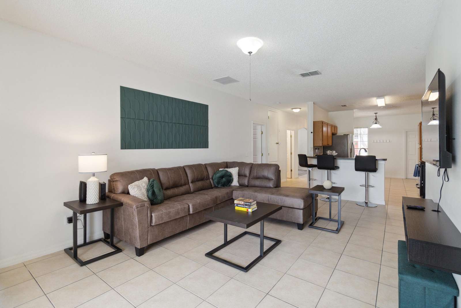 Large living room with a sectional to enjoy a movie night with the kiddos.