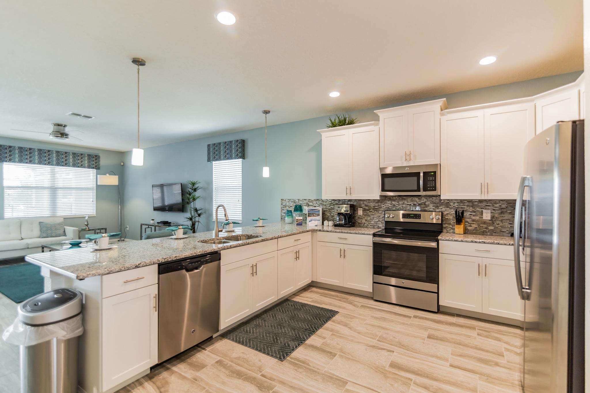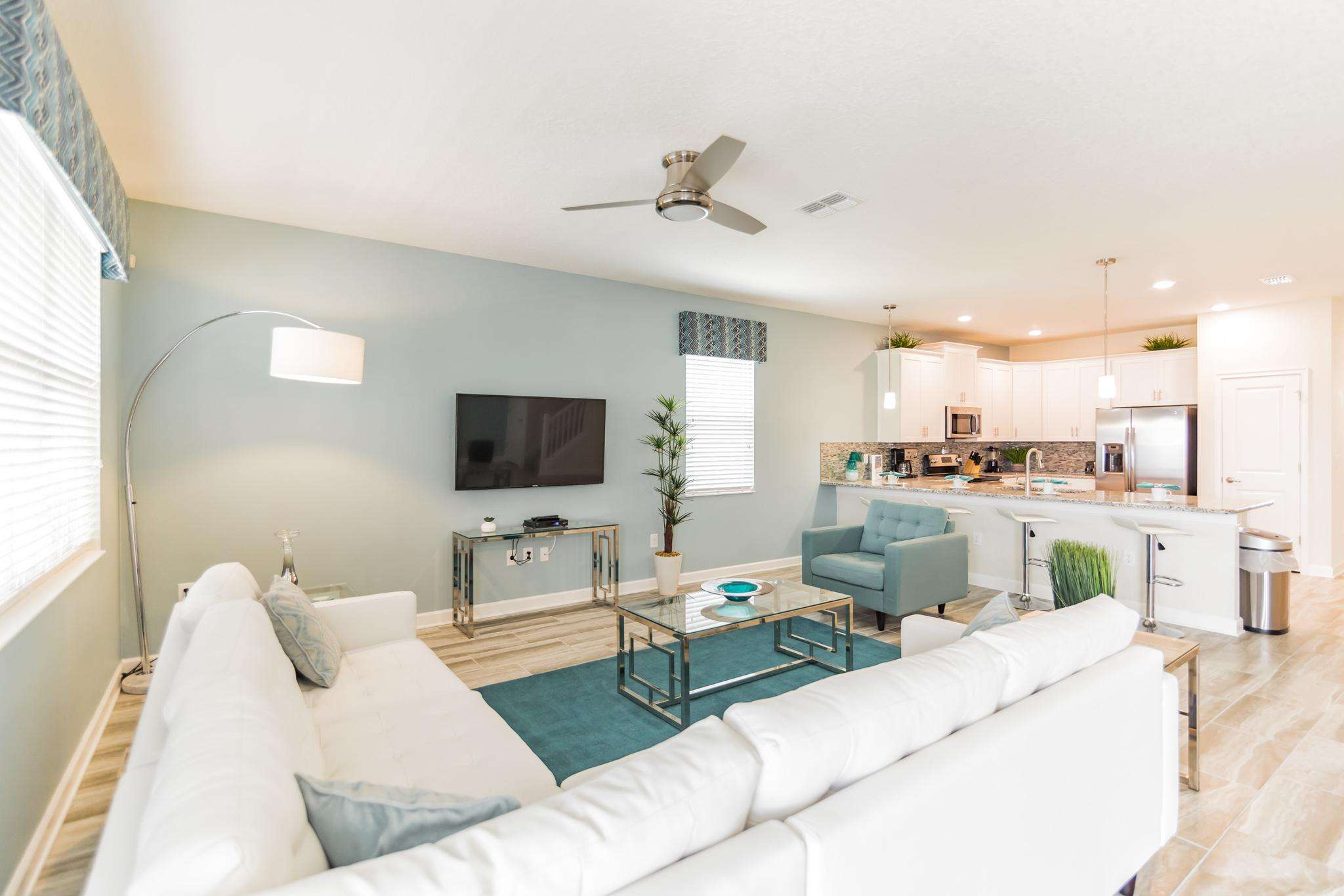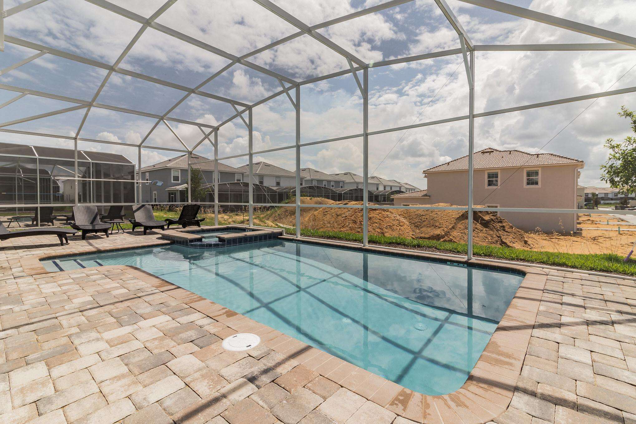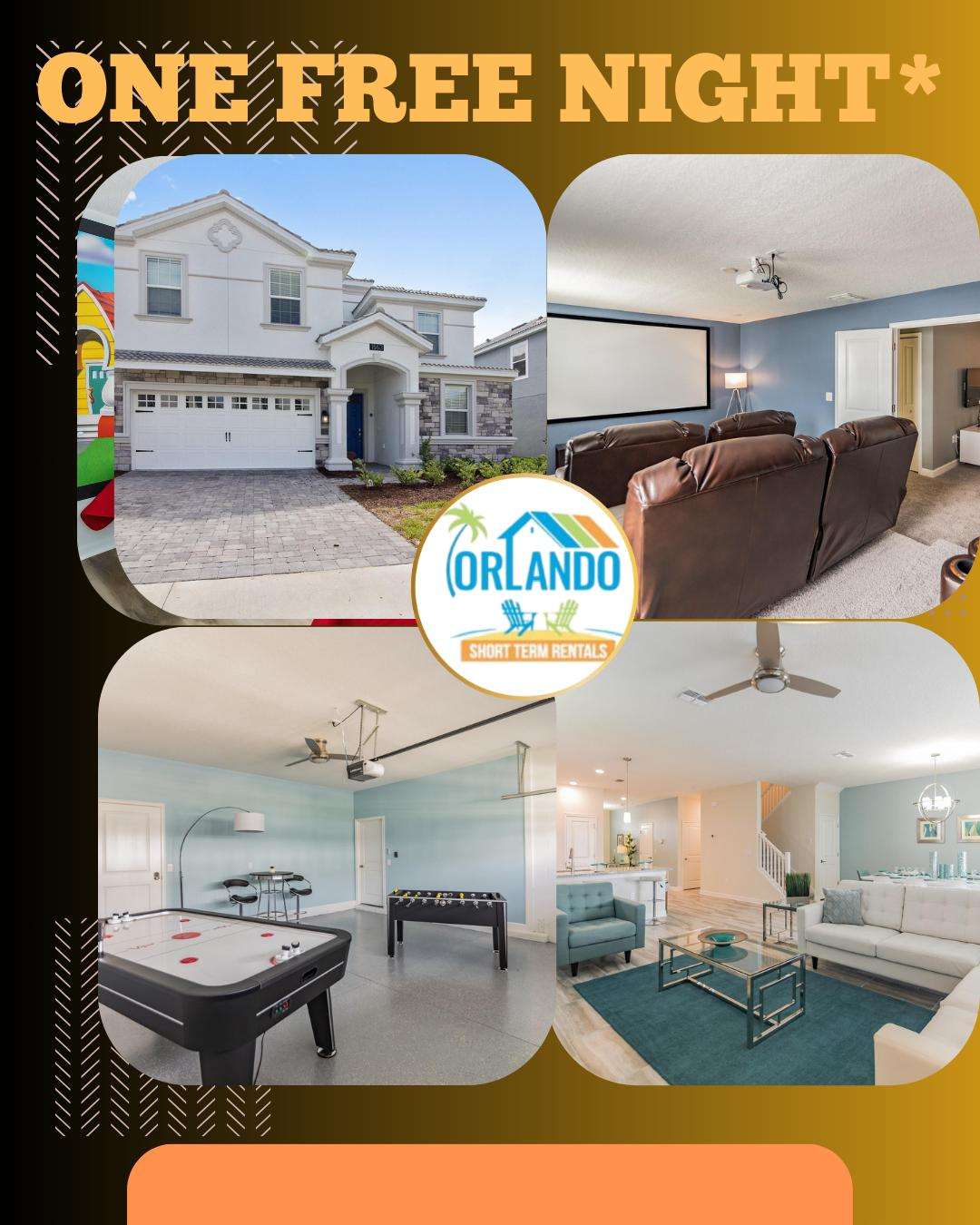 This home is located in a nice community. Professionally decorated, two-story single-family fully furnished and rental ready. All stainless steel appliances, granite countertops, wood cabinets, 8 bedrooms, 5 full bathrooms, a game room, a huge kitchen, theater room, a two-car garage and loft area make this home the ideal luxury vacation rental property. Both king bed are located on the first floor, one of them has a private bathroom with a tub, separate shower and his and her sinks. The rest of the bedrooms are located on the second floor. The heated pool & spa offer the best outdoor vacation experience. Everything you need in a vacation home can be found in this fantastic home! If you have been considering a vacation home, this beautifully furnished home is in a prime location not far from Disney.