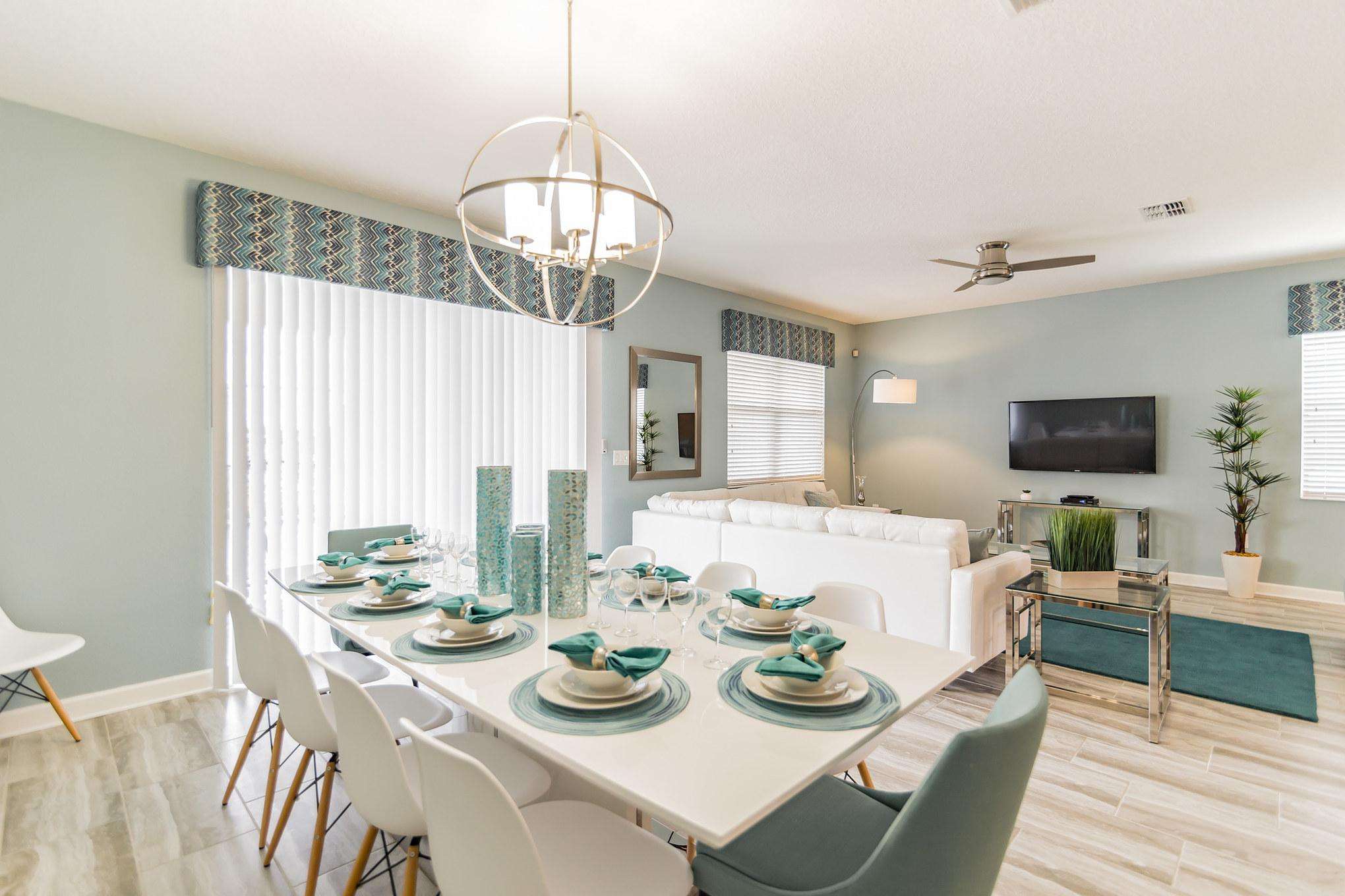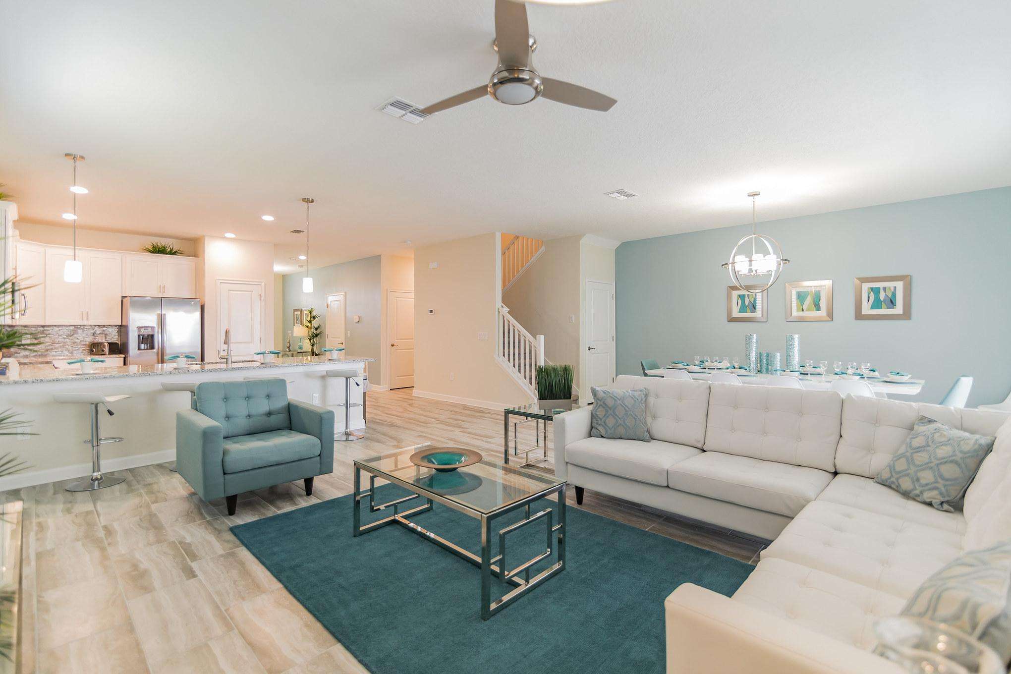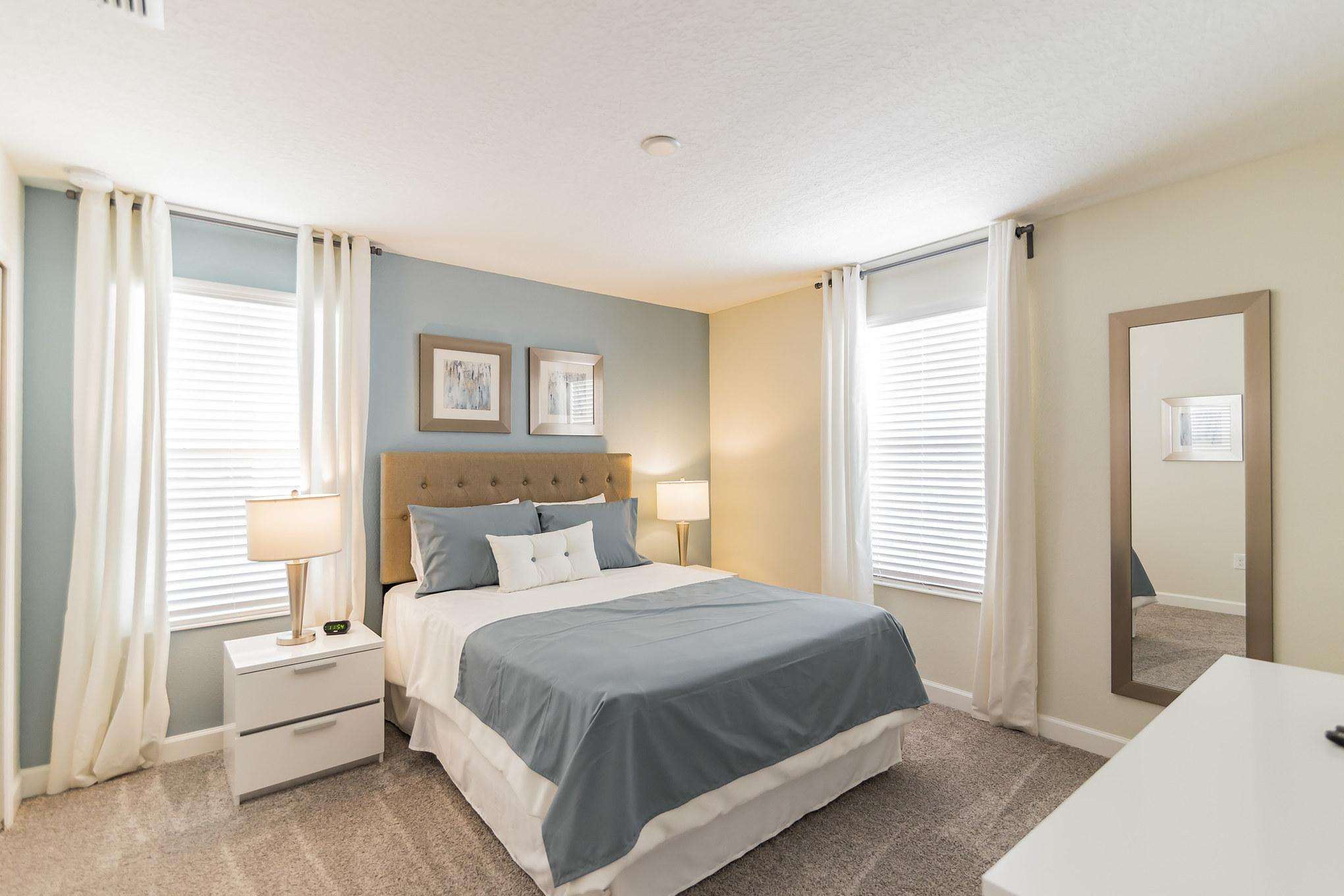 This home is located in a nice community. Professionally decorated, two-story single-family fully furnished and rental ready. All stainless steel appliances, granite countertops, wood cabinets, 8 bedrooms, 5 full bathrooms, a game room, a huge kitchen, theater room, a two-car garage and loft area make this home the ideal luxury vacation rental property. Both king bed are located on the first floor, one of them has a private bathroom with a tub, separate shower and his and her sinks. The rest of the bedrooms are located on the second floor. The heated pool & spa offer the best outdoor vacation experience. Everything you need in a vacation home can be found in this fantastic home! If you have been considering a vacation home, this beautifully furnished home is in a prime location not far from Disney.