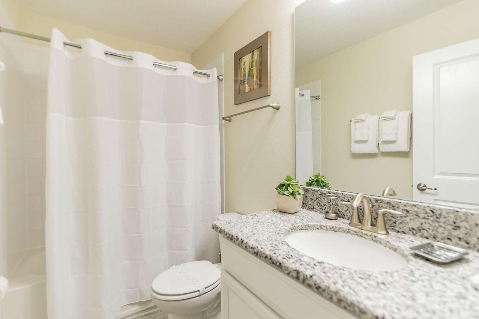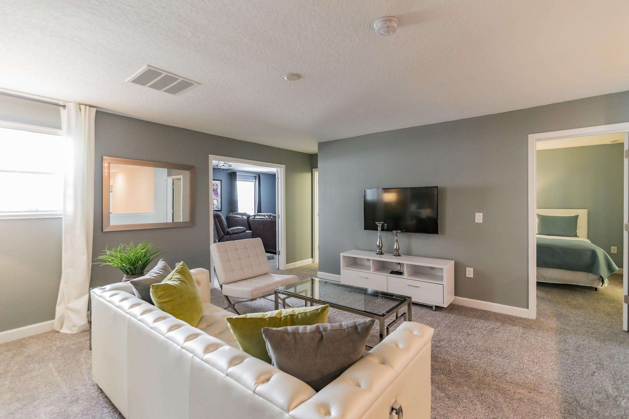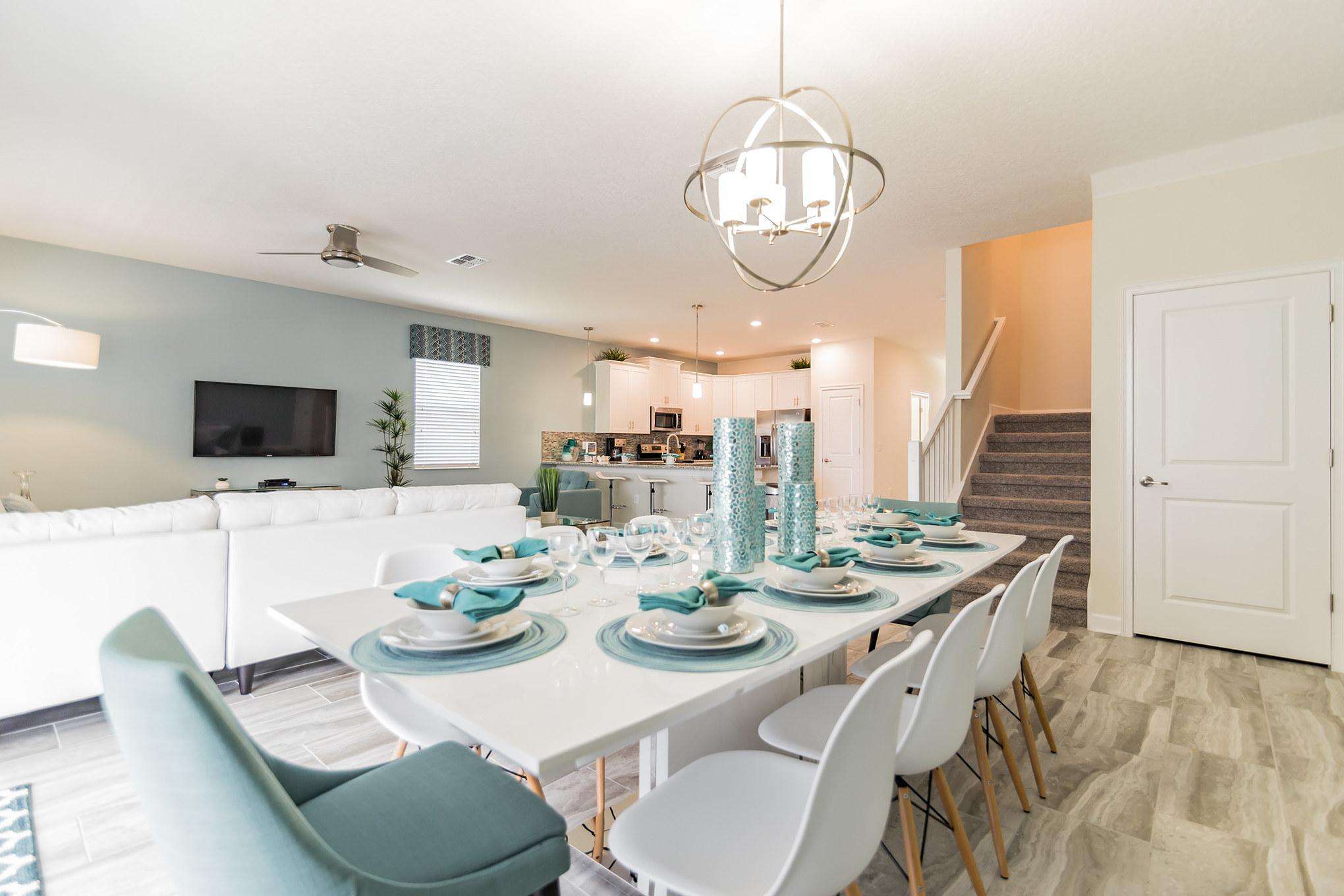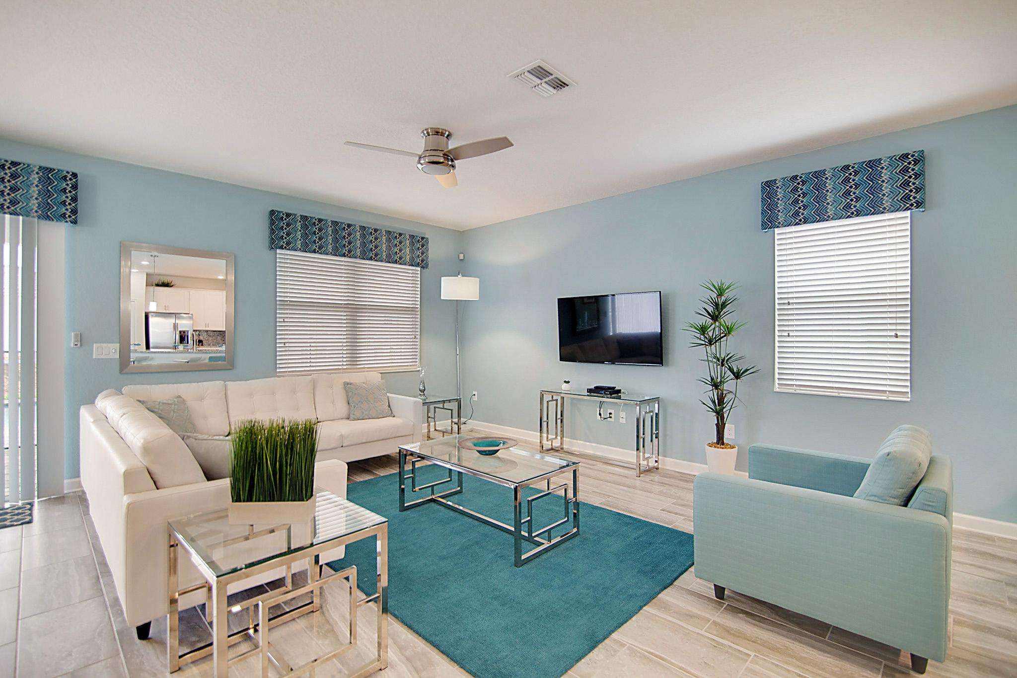 This home is located in a nice community. Professionally decorated, two-story single-family fully furnished and rental ready. All stainless steel appliances, granite countertops, wood cabinets, 8 bedrooms, 5 full bathrooms, a game room, a huge kitchen, theater room, a two-car garage and loft area make this home the ideal luxury vacation rental property. Both king bed are located on the first floor, one of them has a private bathroom with a tub, separate shower and his and her sinks. The rest of the bedrooms are located on the second floor. The heated pool & spa offer the best outdoor vacation experience. Everything you need in a vacation home can be found in this fantastic home! If you have been considering a vacation home, this beautifully furnished home is in a prime location not far from Disney.