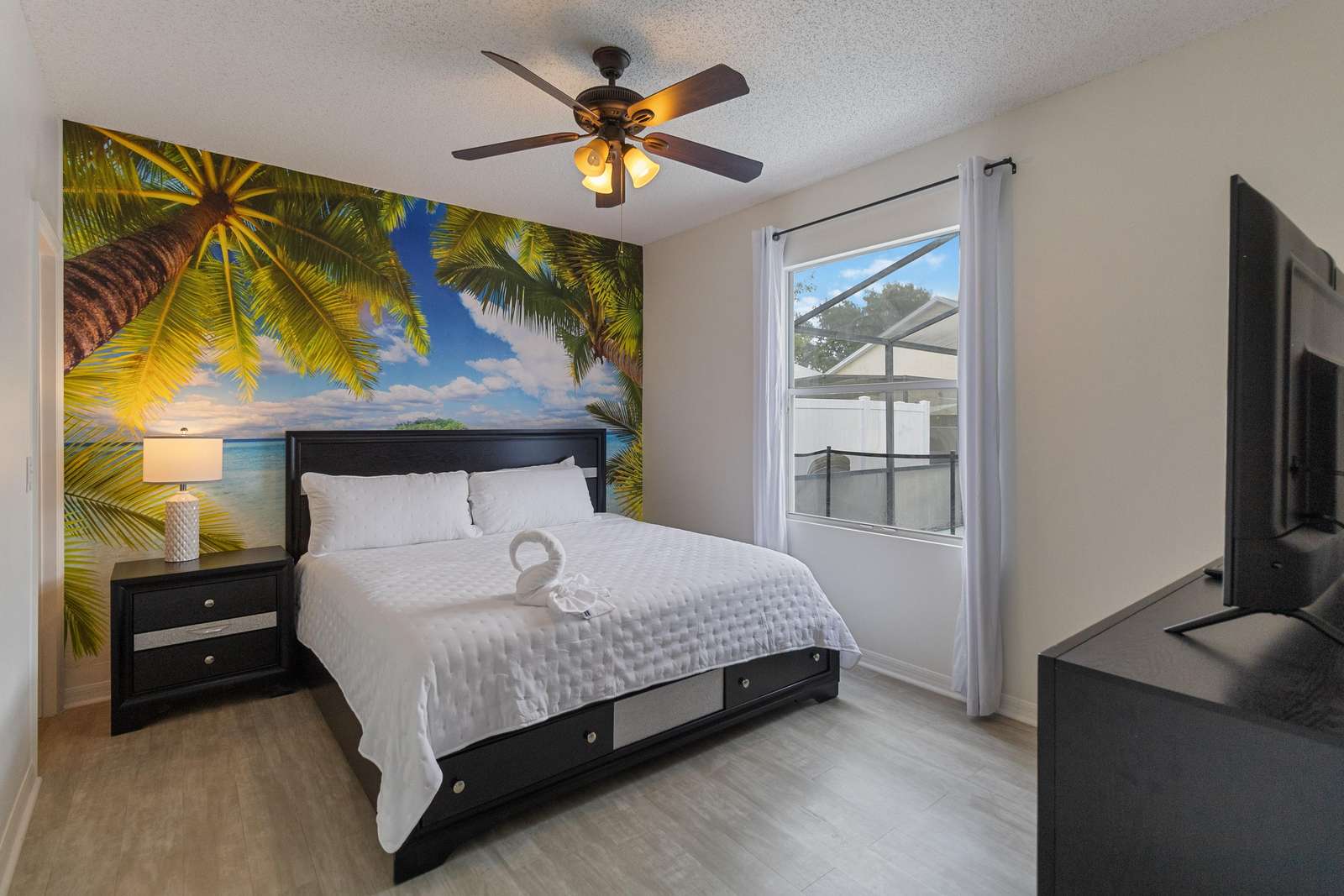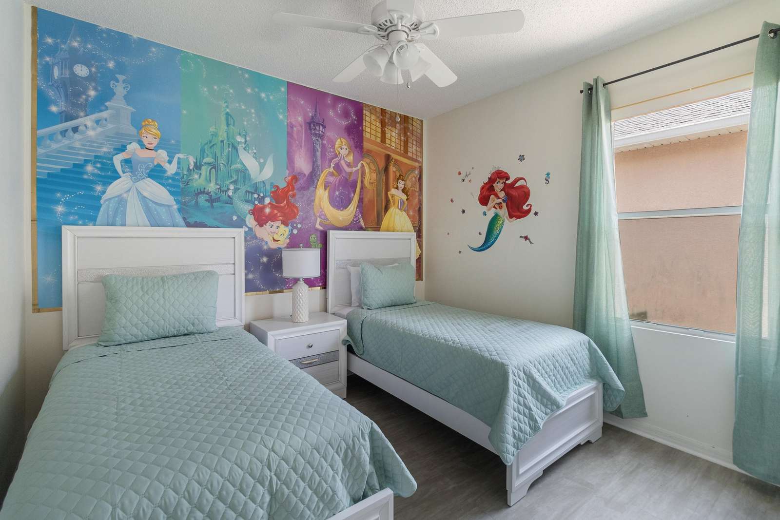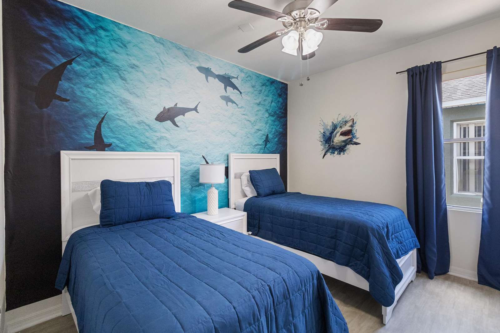 Beautiful, 5BR/3BA pool home in Sunset Ridge. Great entertaining home with screen enclosed pool in covered lanai. It is located in the convenient Davenport community of Sunset Ridge which is close to shopping at Posner Park, Advent Health emergency room, dining, local amenities and access to I4. Less than 20 minutes to Walt Disney World, 25 minutes to Universal Studios, Sea World and International Dr. An open kitchen where you can prepare meal for family and friends. This home comes with 2 master bedroom and a private bathroom, each bedroom comes with a King bed and a TV and an exquisite ocean decoration that will transport you to the Caribbean. The third bedroom comes with two twin beds and a magnificent sharks decoration. The fourth bedroom is nicely decor with Disney Princess and comes with 2 twin beds. Last but not least our last bedroom that will transport you to the hottest beaches of Florida and comes with a bunk bed.