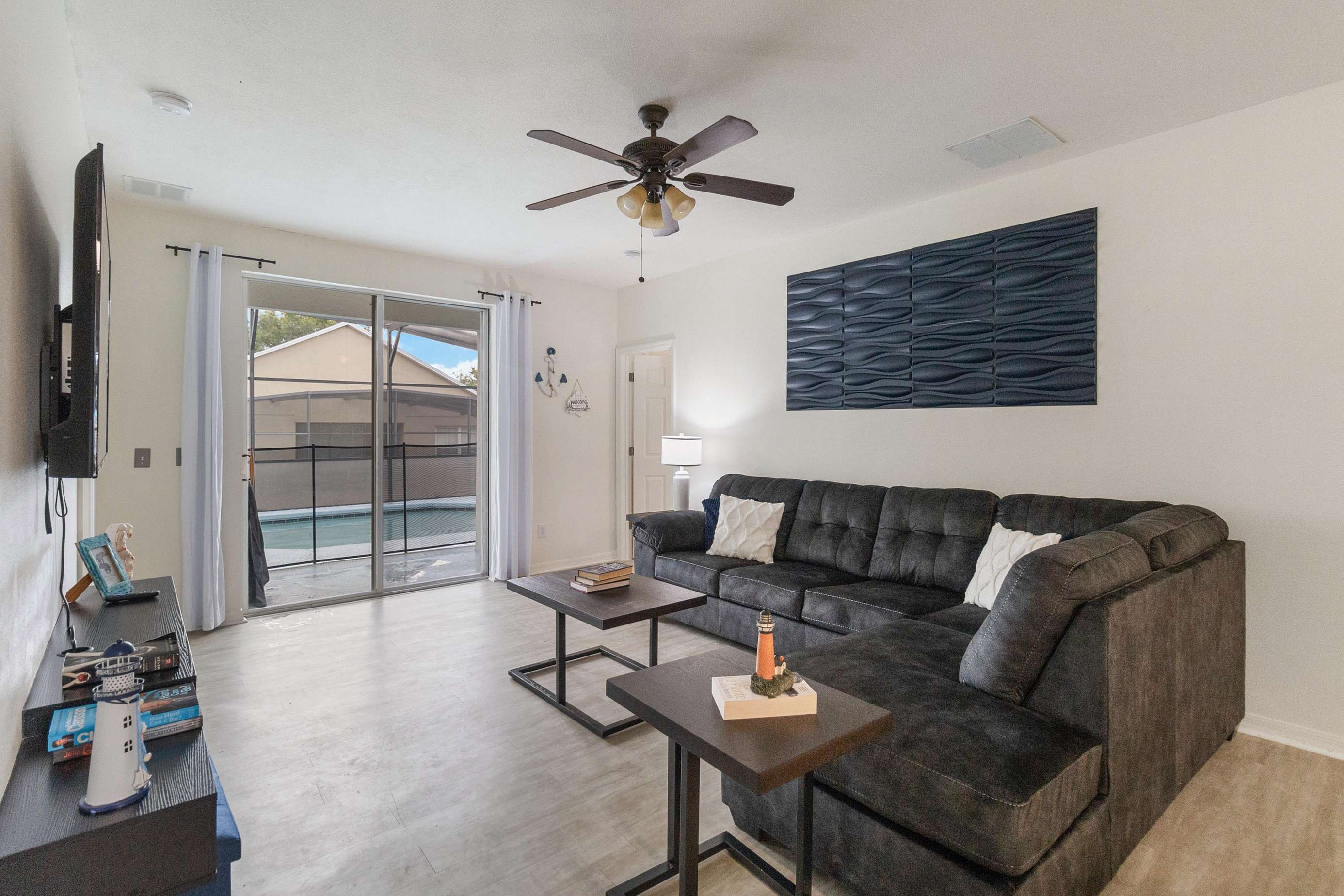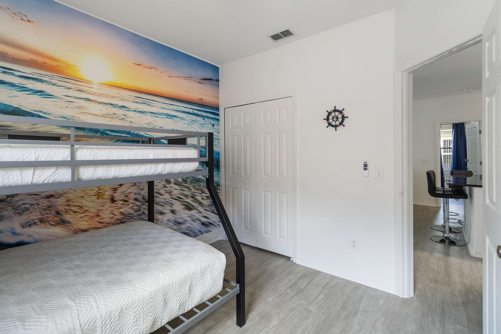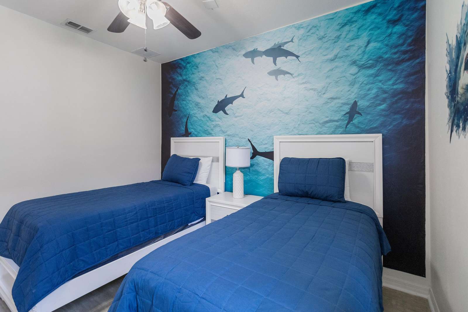 Beautiful, 5BR/3BA pool home in Sunset Ridge. Great entertaining home with screen enclosed pool in covered lanai. It is located in the convenient Davenport community of Sunset Ridge which is close to shopping at Posner Park, Advent Health emergency room, dining, local amenities and access to I4. Less than 20 minutes to Walt Disney World, 25 minutes to Universal Studios, Sea World and International Dr. An open kitchen where you can prepare meal for family and friends. This home comes with 2 master bedroom and a private bathroom, each bedroom comes with a King bed and a TV and an exquisite ocean decoration that will transport you to the Caribbean. The third bedroom comes with two twin beds and a magnificent sharks decoration. The fourth bedroom is nicely decor with Disney Princess and comes with 2 twin beds. Last but not least our last bedroom that will transport you to the hottest beaches of Florida and comes with a bunk bed.