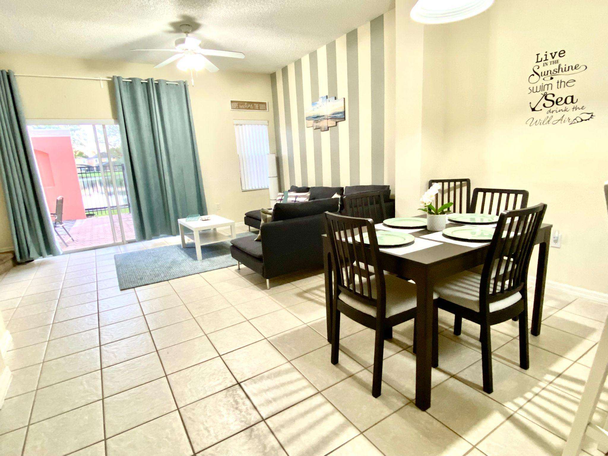 This Amazing 3 bedrooms 2 bathrooms townhome is located in the desired & gated community of Terra Verde!! This home has a beautiful kitchen fully equipped, amazing bedrooms. First bedroom included a king bed, private bathroom and tv. Second bedroom included a queen bed with tv. On our third bedroom you will be transported to Disney fantasia Mickey theme with 2 twin beds and a tv. Tropical beach theme all over the house. Terra Verde is extremely well maintained and offers all the amenities of a resort community including 24-hour security, pool, spa, basketball, volleyball, gym and more! Lake view!!!!!