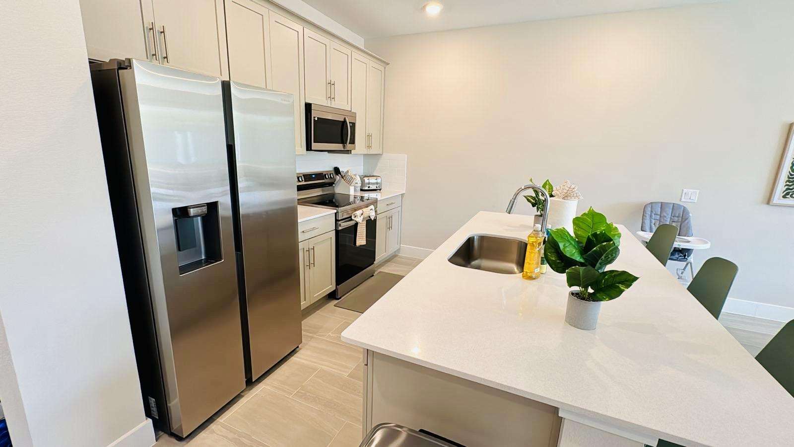Discover luxury and comfort in this professionally furnished 3-bedroom and 2.5 bathrooms Reunion townhome, offering breathtaking private terrace. Designed with elegance in mind, this condo features a fully equipped kitchen with stunning quartz waterfall countertops and high-end appliances, perfect for creating unforgettable vacation memories.