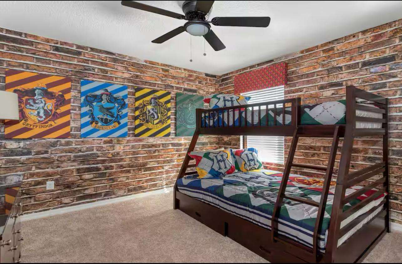 ✔ 5th Bedroom – One twin bed & one bunk bed with a Harry Potter-themed